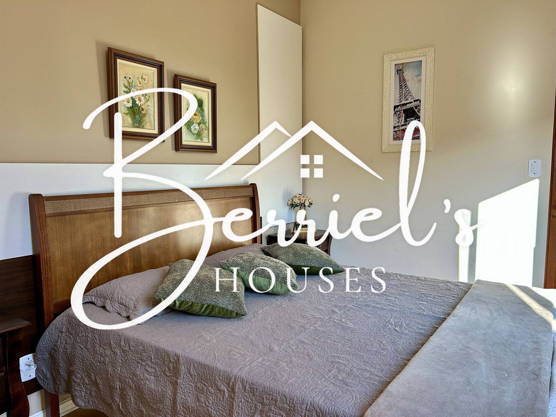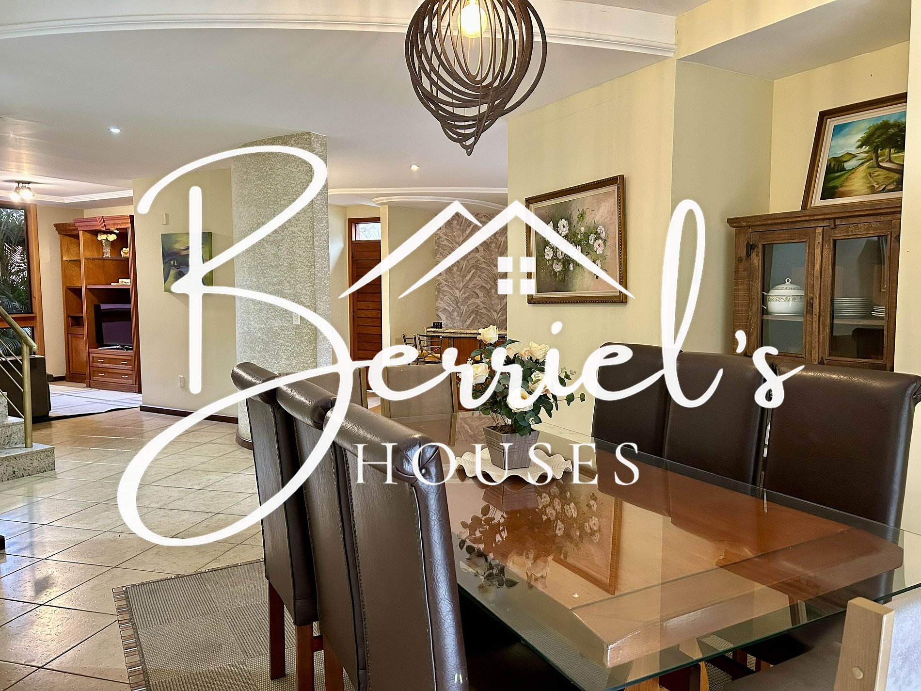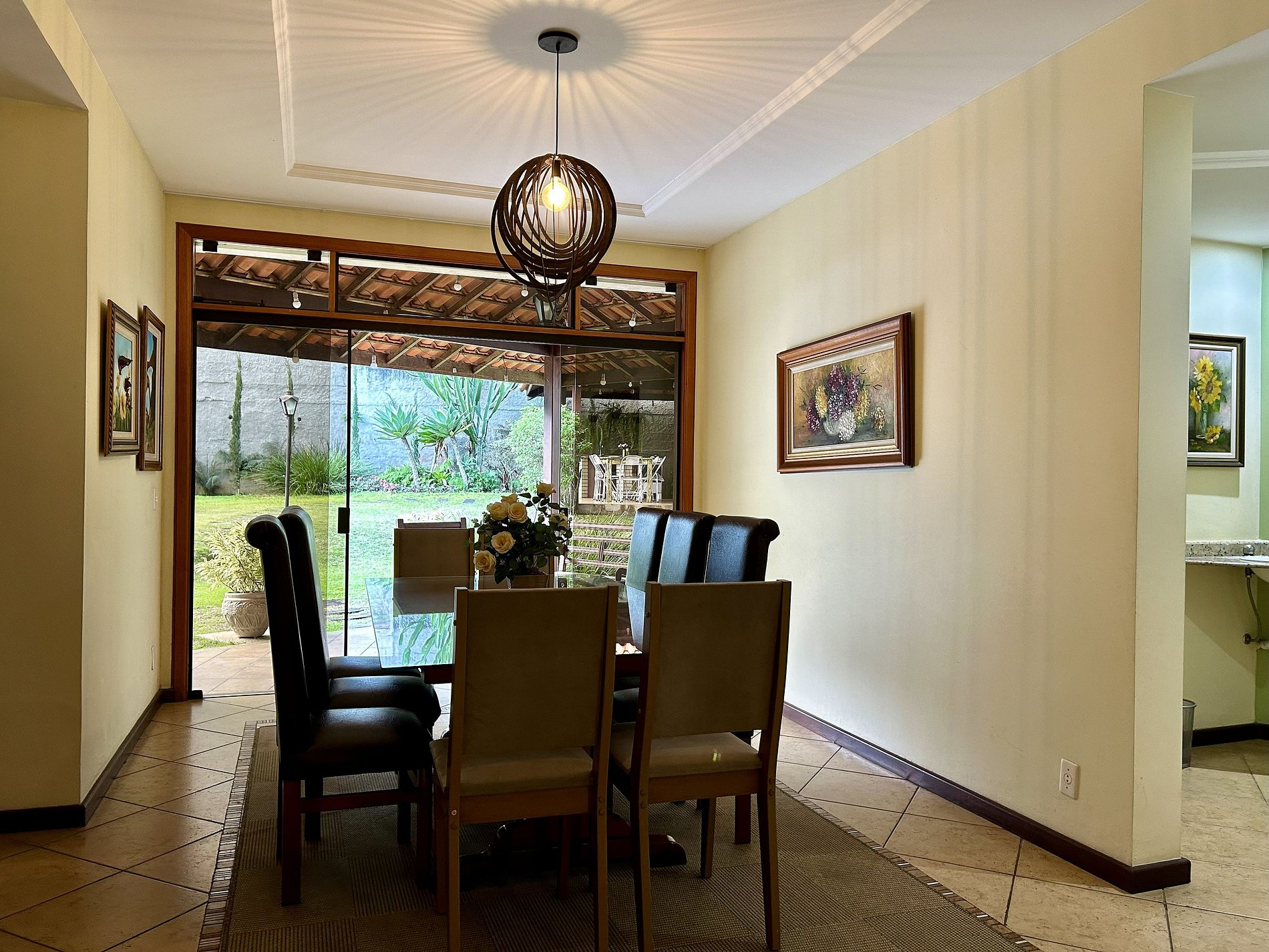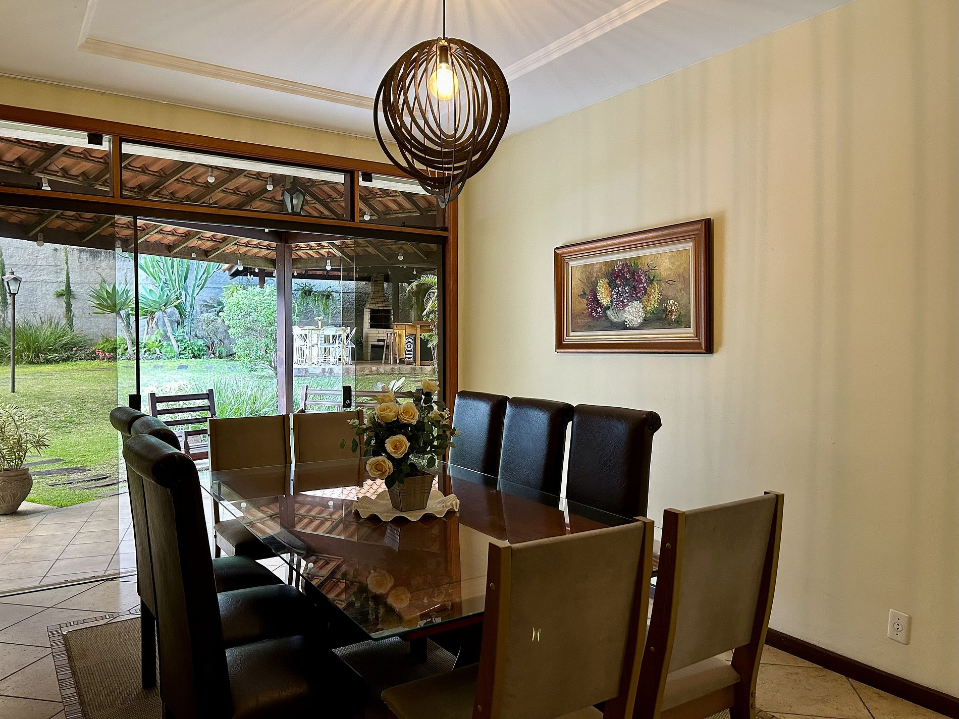 A casa fica situada em um bairro arborizado, dentro de um condomínio tranquilo, silencioso e familiar.