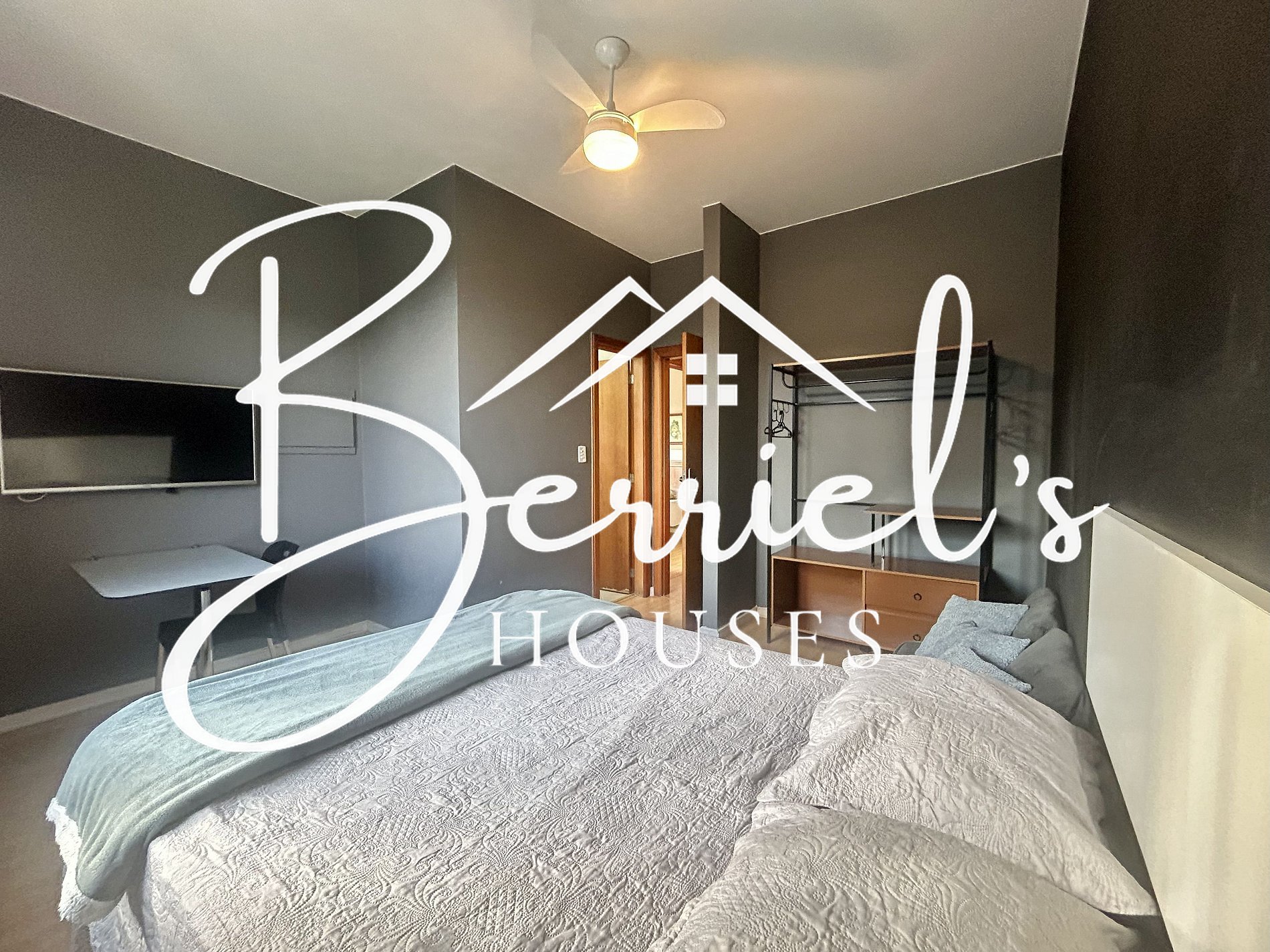 * Cama de casal padrão * Ventilador de teto *